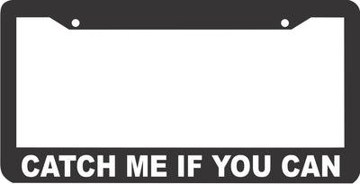 CATCH ME IF YOU CAN License Plate Frame Plastic License Plate Frame Polystyrene plastic with vinyl graphics. Strong with tabs on the back to secure your plate to the frame. This is a buy it now for the frame pictured It is designed to fit a US/CANADA license plate.