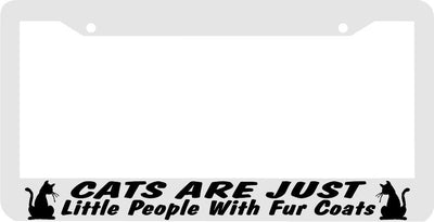CATS ARE JUST LITTLE PEOPLE WITH FUR COATS Plastic License Plate Frame WITH BLACK GRAPHICS Polystyrene plastic with vinyl graphics. Strong with tabs on the back to secure your plate to the frame. This is a buy it now for the frame pictured It is designed to fit a US/CANADA license plate.