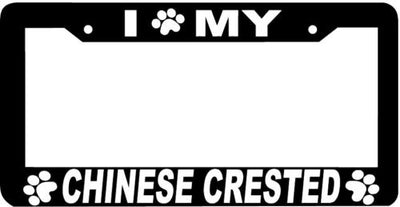 CHINESE CRESTED DOG paw print License Plate Frame Plastic License Plate Frame Polystyrene plastic with vinyl graphics. Strong with tabs on the back to secure your plate to the frame. This is a buy it now for the frame pictured It is designed to fit a US/CANADA license plate.