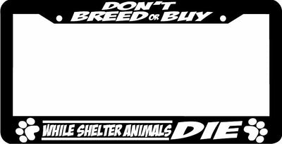 DON'T BREED OR BUY WHEN SHELTER ANIMALS DIE paw print License Plate Frame