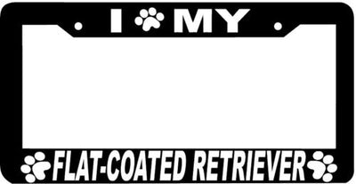FLAT-COATED RETRIEVER DOG paw print License Plate Frame Plastic License Plate Frame Polystyrene plastic with vinyl graphics. Strong with tabs on the back to secure your plate to the frame. This is a buy it now for the frame pictured It is designed to fit a US/CANADA license plate.
