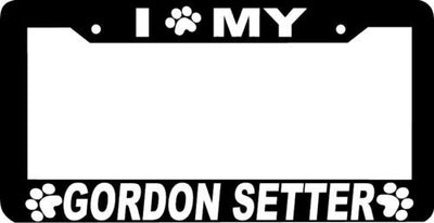 GORDON SETTER DOG paw License Plate Frame Plastic License Plate Frame Polystyrene plastic with vinyl graphics. Strong with tabs on the back to secure your plate to the frame. This is a buy it now for the frame pictured It is designed to fit a US/CANADA license plate.