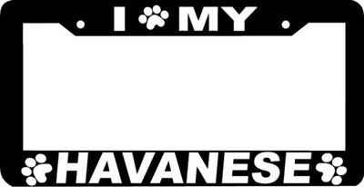 HAVANESE DOG paw print License Plate Frame Plastic License Plate Frame Polystyrene plastic with vinyl graphics. Strong with tabs on the back to secure your plate to the frame. This is a buy it now for the frame pictured It is designed to fit a US/CANADA license plate.