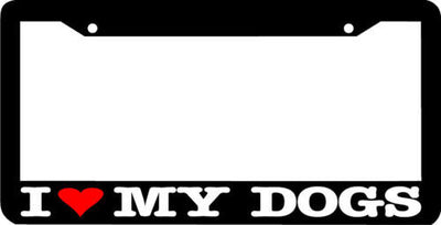 I LOVE MY DOGS License Plate Frame Plastic License Plate Frame Polystyrene plastic with vinyl graphics. Strong with tabs on the back to secure your plate to the frame. This is a buy it now for the frame pictured It is designed to fit a US/CANADA license plate.