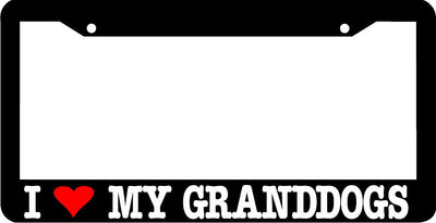 I LOVE MY GRANDDOGS License Plate Frame Plastic License Plate Frame Polystyrene plastic with vinyl graphics. Strong with tabs on the back to secure your plate to the frame. This is a buy it now for the frame pictured It is designed to fit a US/CANADA license plate.