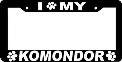 KOMONDOR DOG paw print License Plate Frame Plastic License Plate Frame Polystyrene plastic with vinyl graphics. Strong with tabs on the back to secure your plate to the frame. This is a buy it now for the frame pictured It is designed to fit a US/CANADA license plate.