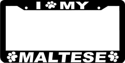 MALTESE PAW PRINT DOG License Plate Frame Plastic License Plate Frame Polystyrene plastic with vinyl graphics. Strong with tabs on the back to secure your plate to the frame. This is a buy it now for the frame pictured It is designed to fit a US/CANADA license plate.