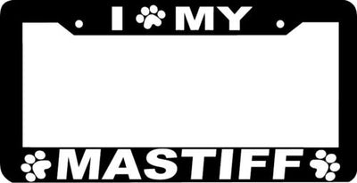 MASTIFF DOG paw print License Plate Frame Plastic License Plate Frame Polystyrene plastic with vinyl graphics. Strong with tabs on the back to secure your plate to the frame. This is a buy it now for the frame pictured It is designed to fit a US/CANADA license plate.