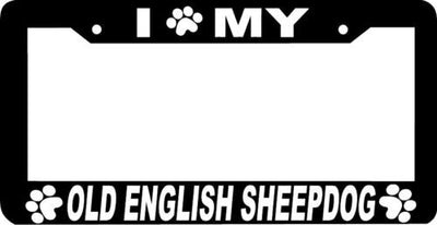 OLD ENGLISH SHEEPDOG DOG paw print License Plate Frame Plastic License Plate Frame Polystyrene plastic with vinyl graphics. Strong with tabs on the back to secure your plate to the frame. This is a buy it now for the frame pictured It is designed to fit a US/CANADA license plate.