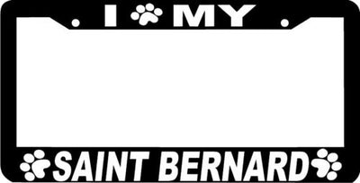 SAINT BERNARD DOG PAW PRINT License Plate Frame Plastic License Plate Frame Polystyrene plastic with vinyl graphics. Strong with tabs on the back to secure your plate to the frame. This is a buy it now for the frame pictured It is designed to fit a US/CANADA license plate.