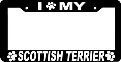 SCOTTISH TERRIER DOG paw print License Plate Frame Plastic License Plate Frame Polystyrene plastic with vinyl graphics. Strong with tabs on the back to secure your plate to the frame. This is a buy it now for the frame pictured It is designed to fit a US/CANADA license plate.