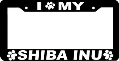 SHIBA INU DOG paw print License Plate Frame Plastic License Plate Frame Polystyrene plastic with vinyl graphics. Strong with tabs on the back to secure your plate to the frame. This is a buy it now for the frame pictured It is designed to fit a US/CANADA license plate.