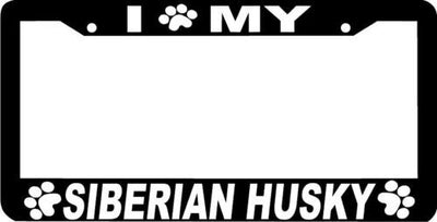 SIBERIAN DOG PAW PRINT License Plate Frame Plastic License Plate Frame Polystyrene plastic with vinyl graphics. Strong with tabs on the back to secure your plate to the frame. This is a buy it now for the frame pictured It is designed to fit a US/CANADA license plate.
