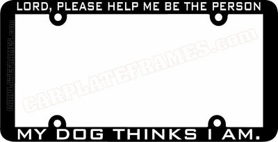 thin frame LORD, PLEASE HELP ME BE THE PERSON MY DOG THINKS License Plate Frame
