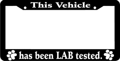 THIS VEHICLE HAS BEEN LAB TESTED woof paw print funny dog License Plate Frame