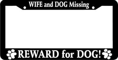 WIFE AND DOG MISSING REWARD FOR DOG woof paw print funny dog License Plate Frame