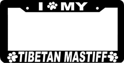 TIBETAN MASTIFF DOG paw print License Plate Frame Plastic License Plate Frame Polystyrene plastic with vinyl graphics. Strong with tabs on the back to secure your plate to the frame. This is a buy it now for the frame pictured It is designed to fit a US/CANADA license plate.