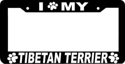 TIBETAN TERRIER DOG paw print License Plate Frame Plastic License Plate Frame Polystyrene plastic with vinyl graphics. Strong with tabs on the back to secure your plate to the frame. This is a buy it now for the frame pictured It is designed to fit a US/CANADA license plate.