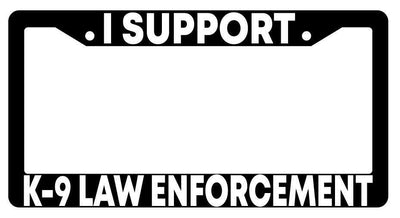 I Support K-9 Law Enforcement Black Plastic License Plate Frame I Support K-9 Law Enforcement Black Plastic License Plate Frame Description I Support K-9 Law Enforcement Black license plate frame made from high impact ABS plastic, covered with color vinyl printing. This frame is designed to last. These frames will last longer than your car.