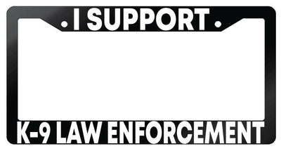 I Support K-9 Law Enforcement Glossy Black Plastic License Plate Frame I Support K-9 Law Enforcement Glossy Black Plastic License Plate Frame Description I Support K-9 Law Enforcement Glossy Black Plastic license plate frame made from high impact ABS plastic, covered with color vinyl printing. This frame is designed to last. These frames will last longer than your car.