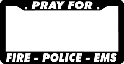 PRAY FOR FIRE - - EMS License Plate Frame Plastic License Plate Frame Polystyrene plastic with vinyl graphics. Strong with tabs on the back to secure your plate to the frame. This is a buy it now for the frame pictured It is designed to fit a US/CANADA license plate.