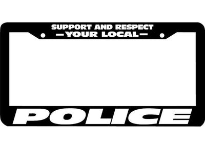 SUPPORT AND RESPECT YOUR LOCAL POLICE License Plate Frame. CUSTOM MADE OF - Black ABS Plastic THESE FRAMES ARE STANDARD COMES WITH SCREWS AND SCREW CAPS THEY FIT ALL LICENSE PLATES WITH U.S. & CANADA Plates Frames are custom made to order and we can make any custom work you want AND PLEASE EMAIL ME WITH ANY QUESTIONS. Best price All frames comes with black screw caps and warranty against any defect