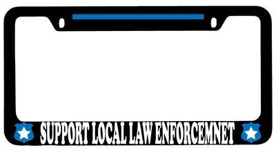 Support Local Law Enforcement w/STRIPE Black METAL License Plate Frame Support Local Law Enforcement w/STRIPE Black METAL License Plate Frame Description Support Local Law Enforcement w/STRIPE Black Metal license plate frame made from high quality steel, covered with premium outdoor color vinyl printing with a minimum life expectancy of 7 year. The vinyl is designed to stand up to the elements and will not peel off in car washes or other elements your car may be subjected to. This frame is designed to last. Designed to withstand outdoor conditions We do all kinds of different products.