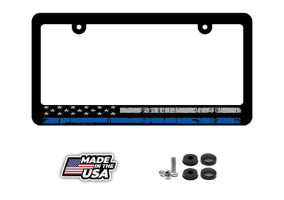 Reflective Thin Blue Line Support Police Black License Plate Frame Top N Bottom