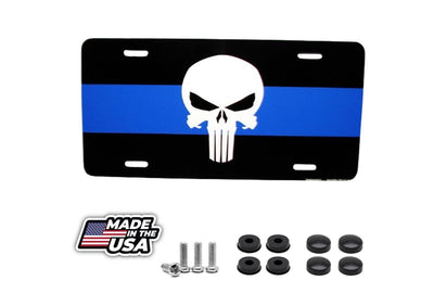 THIN BLUE LINE SKULL METAL CAR LICENSE PLATE AUTO TAG. THIN BLUE POLICE