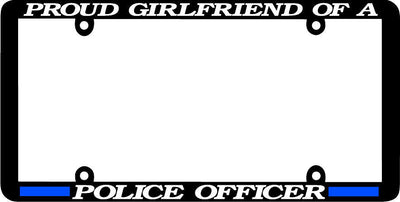 Thin Frame PROUD GIRLFRIEND OF A POLICE OFFICER blue line License Plate Frame