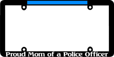 Thin Frame PROUD MOM OF A POLICE OFFICER Blue Line Police License Plate Frame