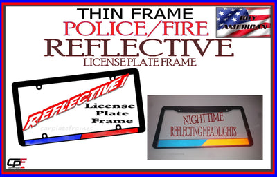 THIN REFLECTIVE POLICE FIRE blue red line fire / police License Plate Frame