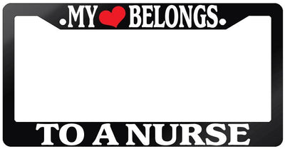 Glossy Black License Plate Frame MY HEART BELONGS TO A NURSE Auto Accessory Mod-GRAPH9856236-7197