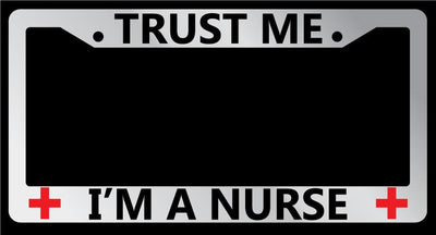 Chrome METAL License Plate Frame TRUST ME I'M A NURSE (LOGO) Mod-GRAPH9856236-9453