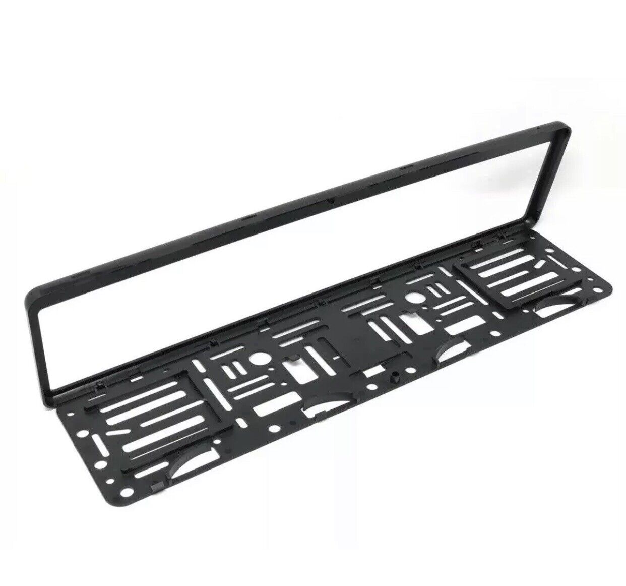 European Euro License Plate Holder Frame Trim Surround Tag Bracket Audi Porsche. x High Quality European German license plate frame Cover closes with 3 security pins press up to lock the cover Frame hinged ! The back has many holes to line up with existing holes to mount the frame on the front or back of your car. Black frame, no advertising from European dealers. Made of ABS + PC (plastic not metal) Fits standard 1994 and newer European aluminum plates with dimensions: Length 20.5"(520mm) x Width 4.5"(114mm) x 1mm Thick Black Frame dimensions: Length 20.75 (527mm) x Width 5.25 (132mm) x 15mm thick See my customized european license plates listing THE LISTING IS FOR 1x EURO PLASTIC PLATE HOLDER ONLY ! LICENSE PLATE NOT INCLUDED !