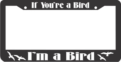 IF YOU'RE A BIRD I'M A BIRD License Plate Frame Plastic License Plate Frame Polystyrene plastic with vinyl graphics. Strong with tabs on the back to secure your plate to the frame. This is a buy it now for the frame pictured It is designed to fit a US/CANADA license plate.