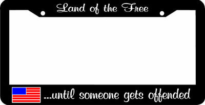 LAND OF THE FREE UNTIL SOMEONE GETS OFFENDED License Plate Frame