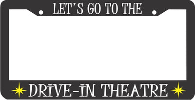 LET'S GO TO THE DRIVE IN THEATRE License Plate Frame Plastic License Plate Frame Polystyrene plastic with vinyl graphics. Strong with tabs on the back to secure your plate to the frame. This is a buy it now for the frame pictured It is designed to fit a US/CANADA license plate.
