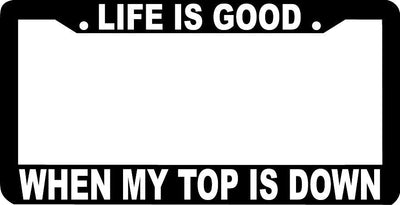 LIFE IS GOOD WHEN MY TOP IS DOWN convertable topless License Plate Frame