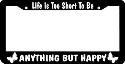 LIFE IS TOO SHORT TO BE ANYTHING BUT HAPPY butterfly License Plate Frame